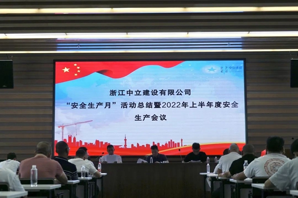 2022年7月8日,浙江中立建設(shè)有限公司在公司會(huì)議室召開了“安全生產(chǎn)月”活動(dòng)總結(jié)暨2022年上半年度安全生產(chǎn)會(huì)議。公司分管安全副總經(jīng)理吳韶斌、安全部全體人員、項(xiàng)目安全管理人員等共40余人參加了會(huì)議。
