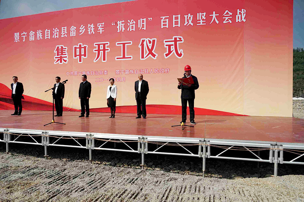 4月24日上午,景寧畬族自治縣畬鄉(xiāng)鐵軍“拆治歸”百日攻堅大會戰(zhàn)集中開工儀式在鳳凰學(xué)校舉行,縣委書記、縣長等領(lǐng)導(dǎo)出席儀式,中立公司代表40多個施工項(xiàng)目單位作表態(tài)發(fā)言。