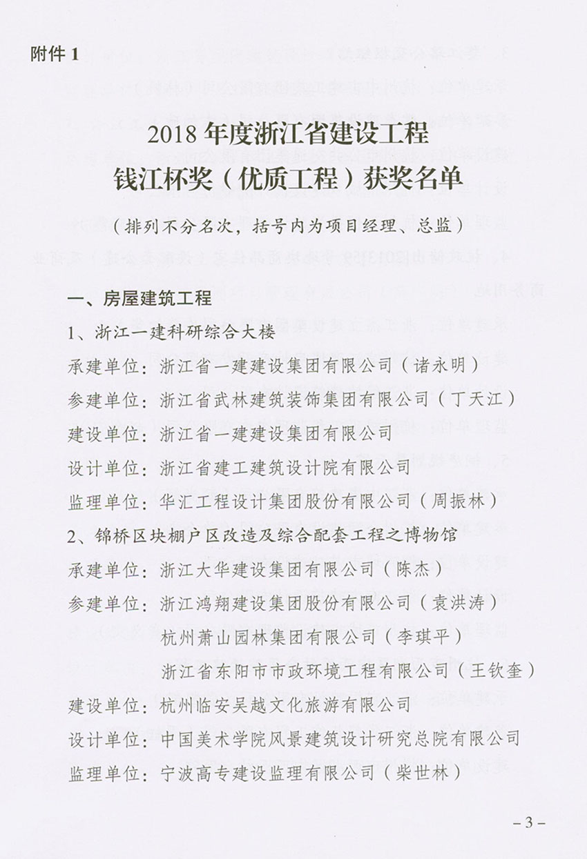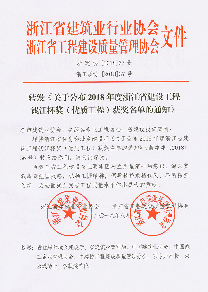喜報(bào)!榮獲2018年度浙江省建設(shè)工程錢江杯獎(jiǎng)(優(yōu)質(zhì)工程)