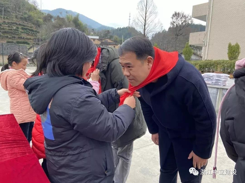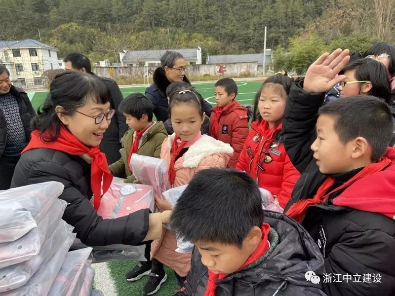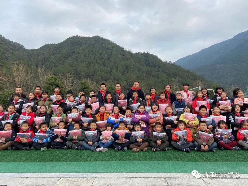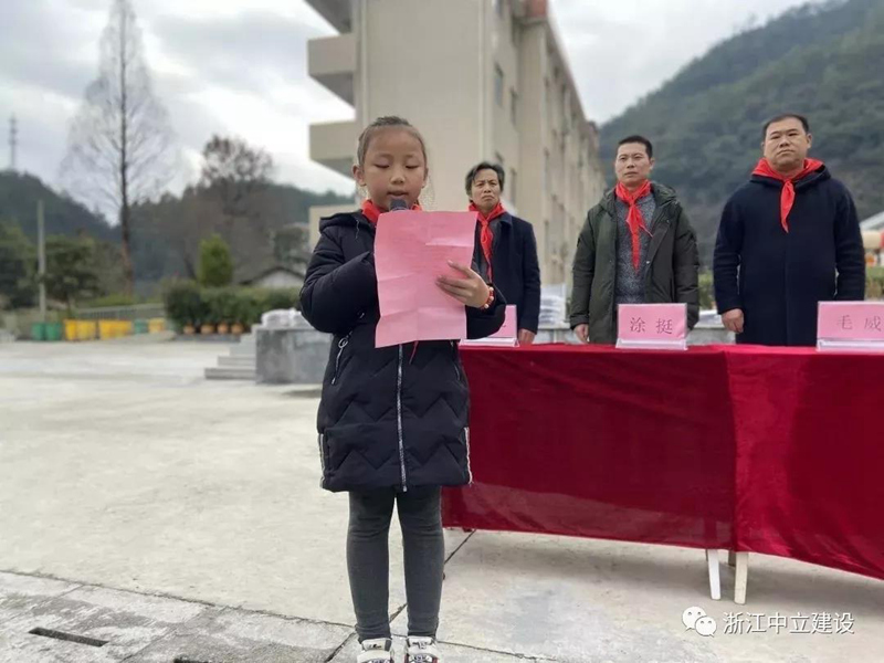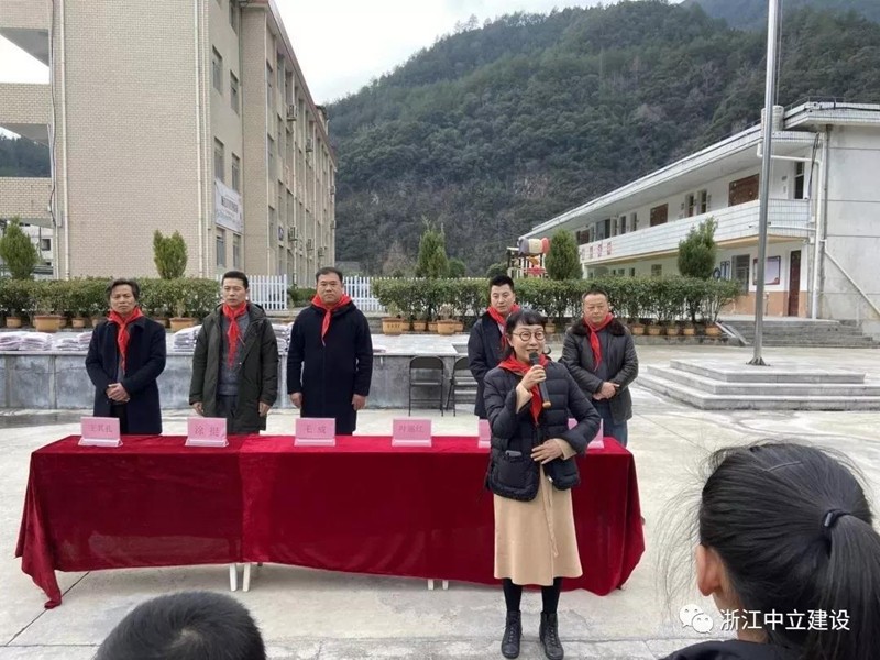 新年伊始,恰逢臘八,浙江中立建設(shè)有限公司帶著81套校服走進(jìn)遂昌大山深處的黃沙腰小學(xué),給大山里的孩子送去冬日里的溫暖。公司副總經(jīng)理葉麗紅、項目負(fù)責(zé)人曹亮、黃沙腰鎮(zhèn)鎮(zhèn)長毛威、黃沙腰鎮(zhèn)人大主席涂挺、遂昌縣教育局黨組成員王其孔、黃沙腰小學(xué)校長葉益明出席了捐贈儀式。在捐贈儀式上葉麗紅希望同學(xué)們刻苦學(xué)習(xí),立志成才,不負(fù)韶華,回報社會,回報祖國。葉校長致辭對捐贈校服的善舉表述了衷心的感謝。校優(yōu)秀少先隊員王夢媛致感謝詞:“叔叔阿姨們,請相信我們,我們會努力學(xué)習(xí),去創(chuàng)造一片屬于自己的絢麗天空;我們會努力學(xué)習(xí),早日成為國家的棟梁,為家鄉(xiāng)建設(shè)貢獻(xiàn)自己的力量。我們堅信一定不會讓你們失望!”
